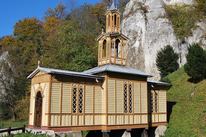 Ojców and Pieskowa Skała Castle Cracovian Gate and Club of Hercules Little Church on the Water English speaking driver and tour leader Air-conditioned vehicle Transfer & Admission fees