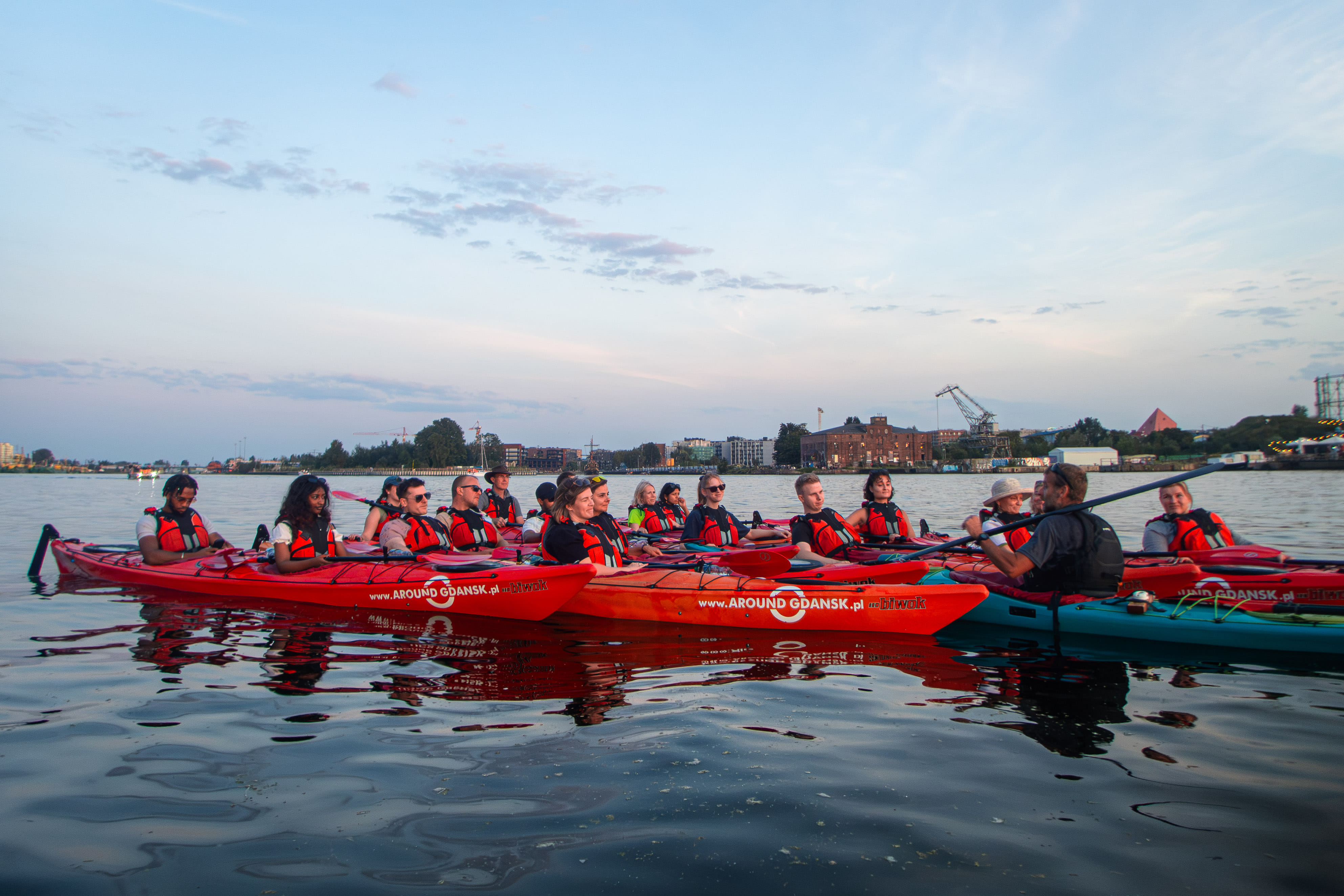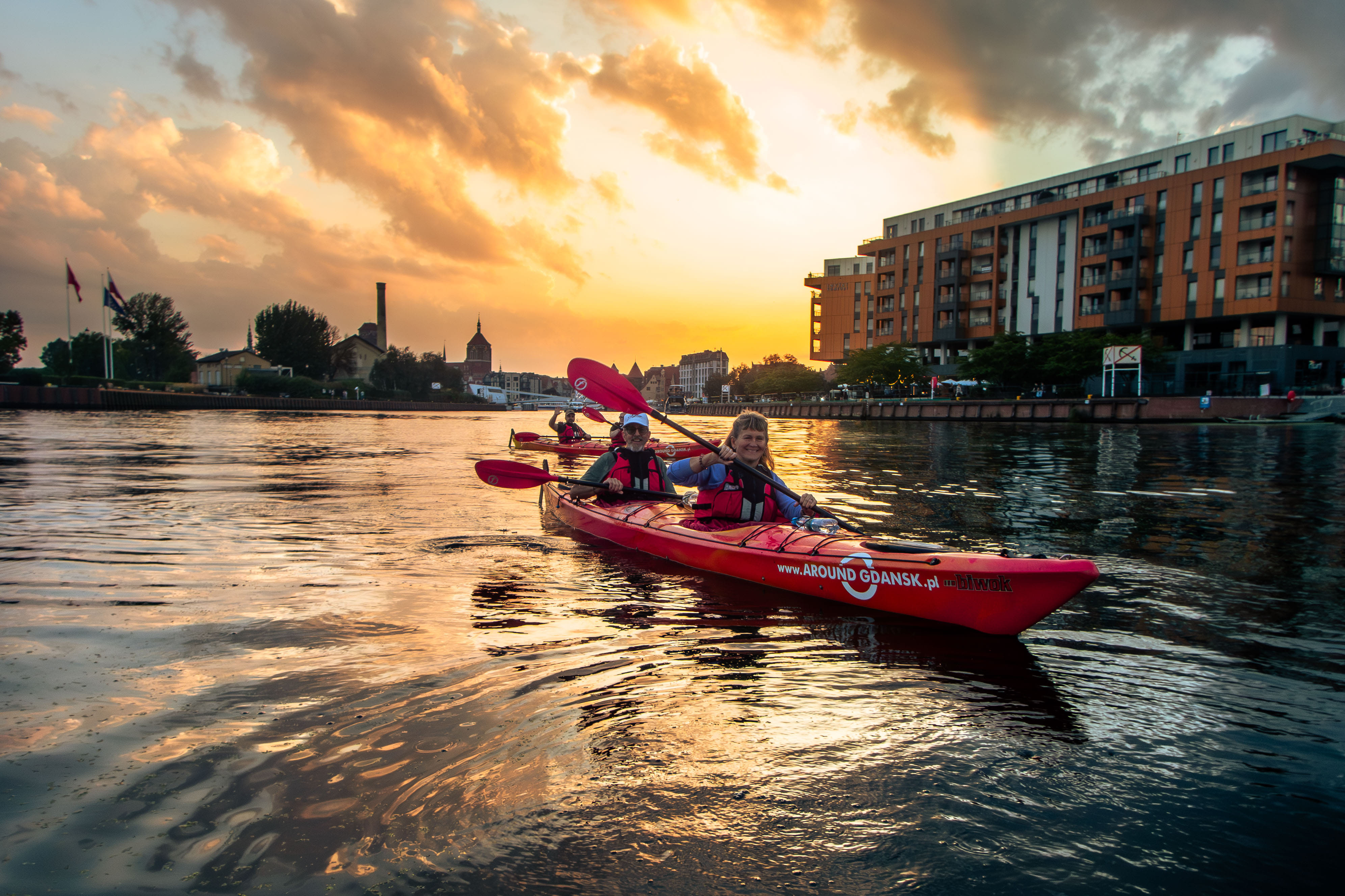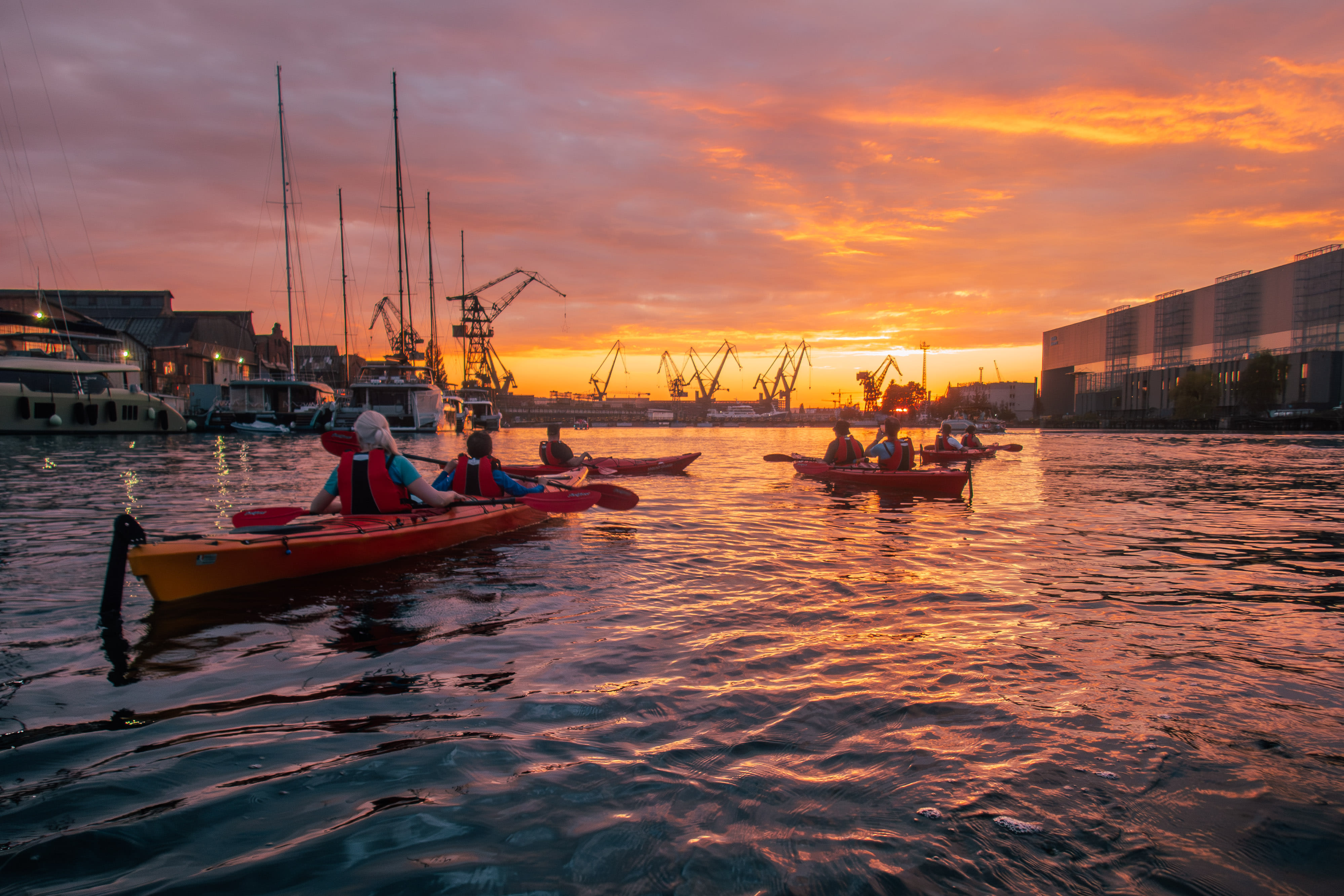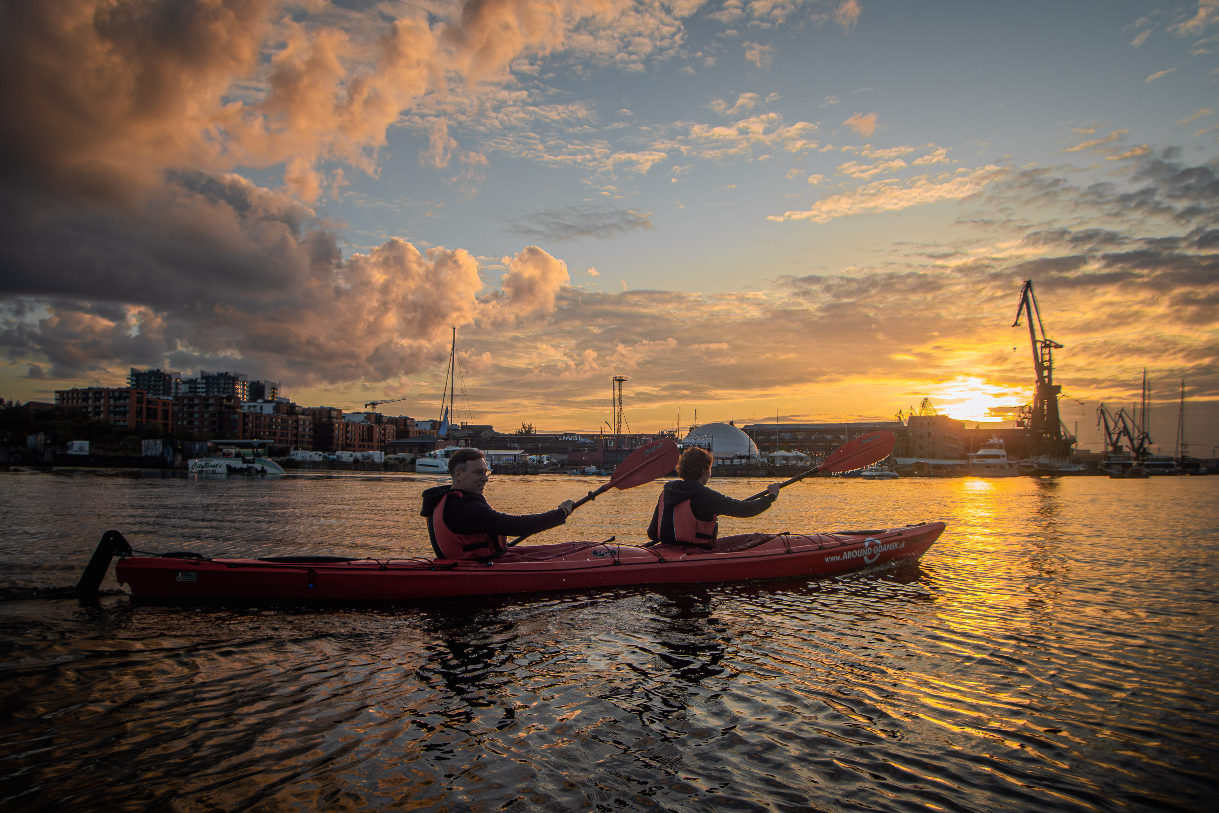 Embrace the golden hour in Gdańsk with this enchanting sunset kayaking adventure, the ultimate way to experience the city’s summer beauty from the water. Your journey starts approximately two hours before sunset at our riverside base, where our expert guides conduct a comprehensive safety briefing and a fundamental paddling lesson. You will be equipped with professional sea kayaks, featuring individual cockpits secured with spray decks (skirts) to keep you dry and comfortable. To ensure a smooth experience, our kayaks are equipped with rudders, making it effortless to maintain your course and navigate even in changing conditions. These high-performance boats are designed to slice through the water efficiently, allowing you to cover greater distances with less effort.
