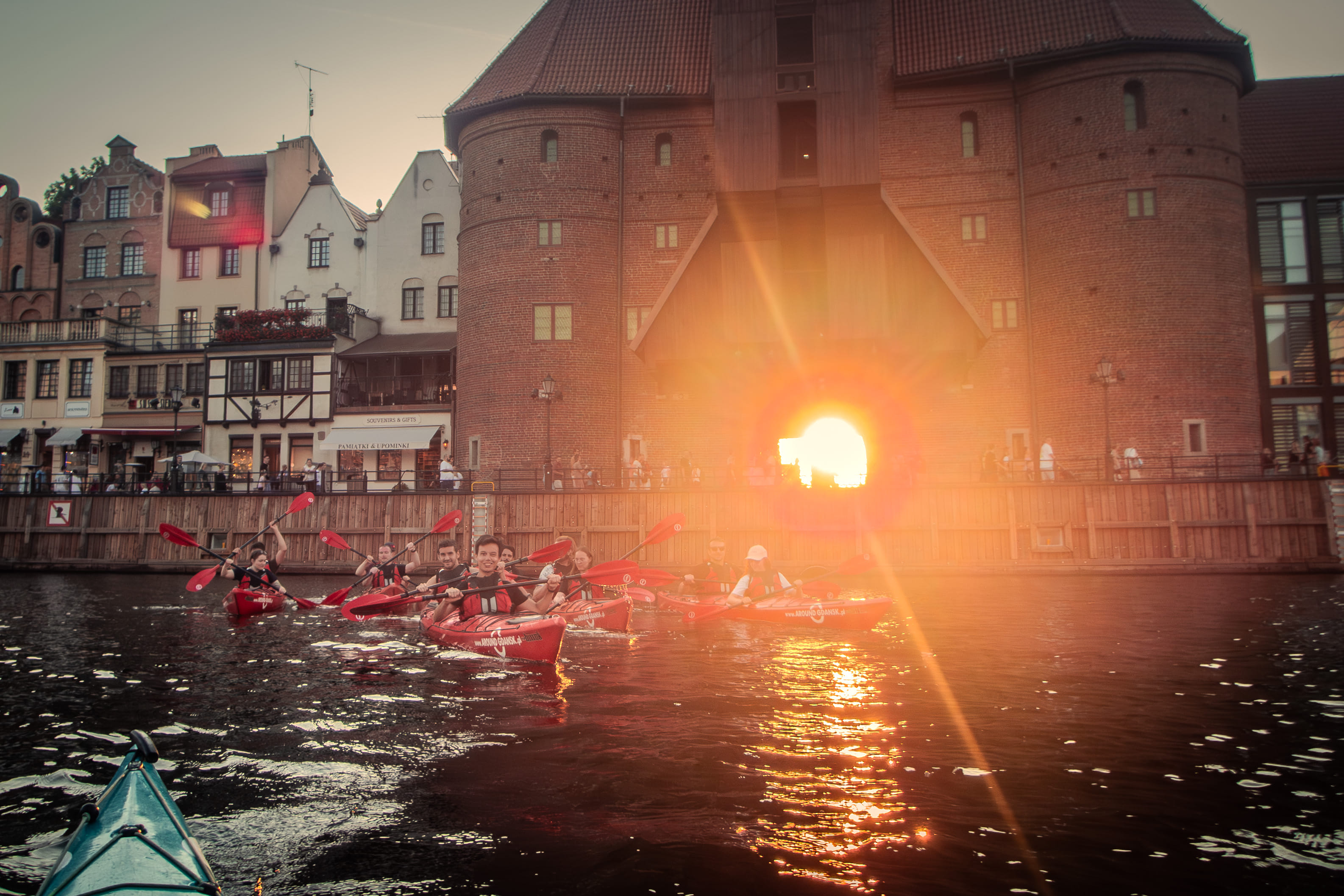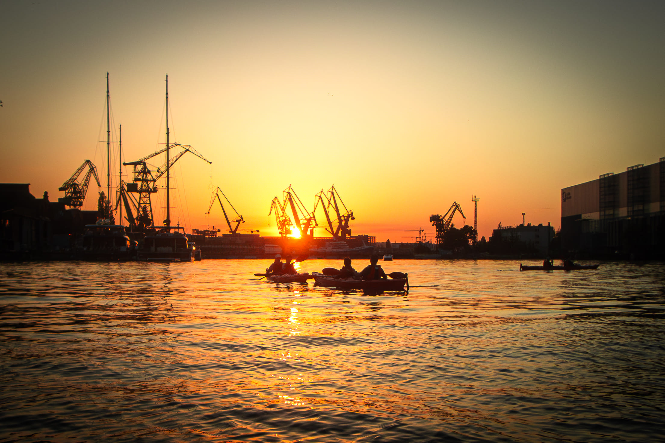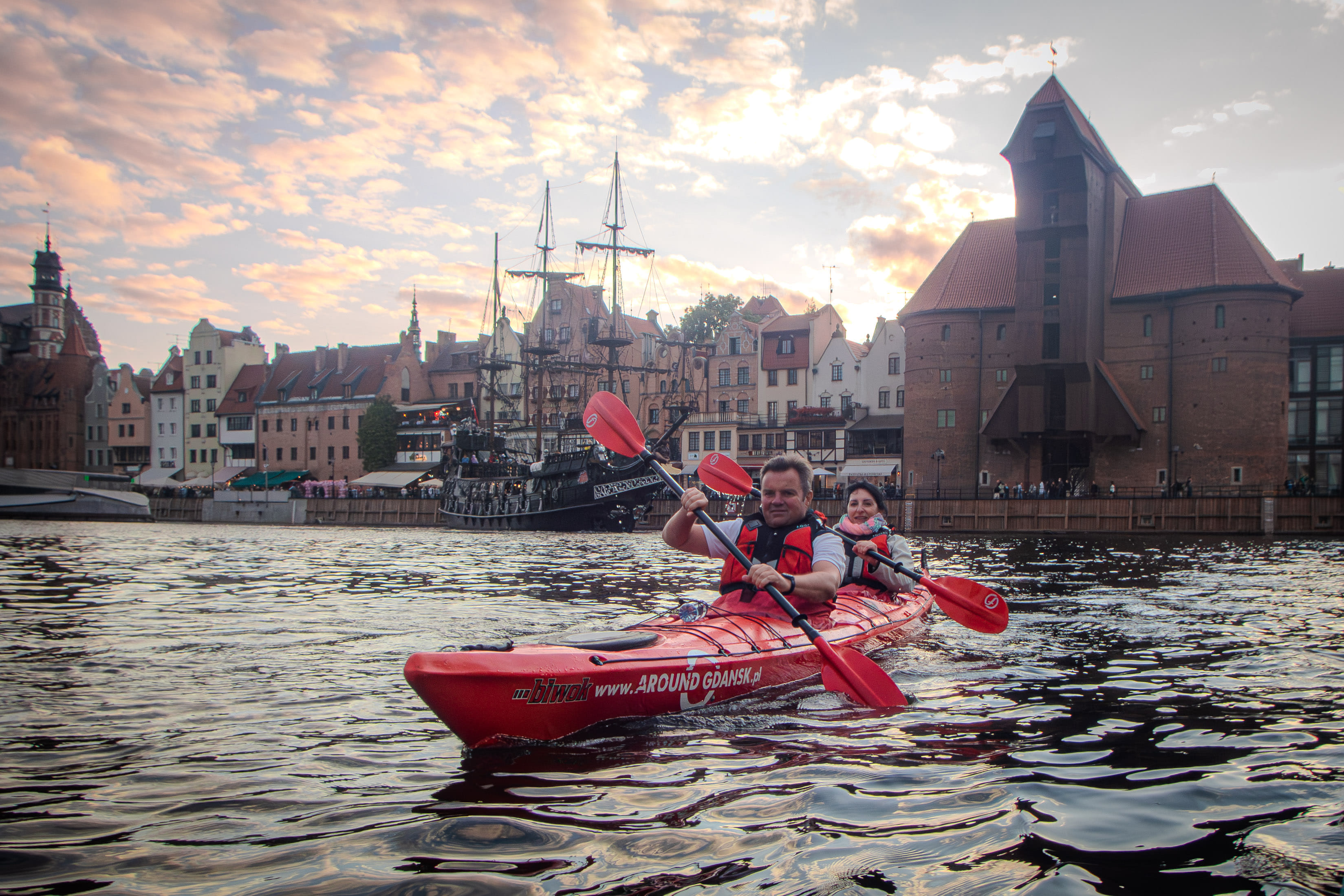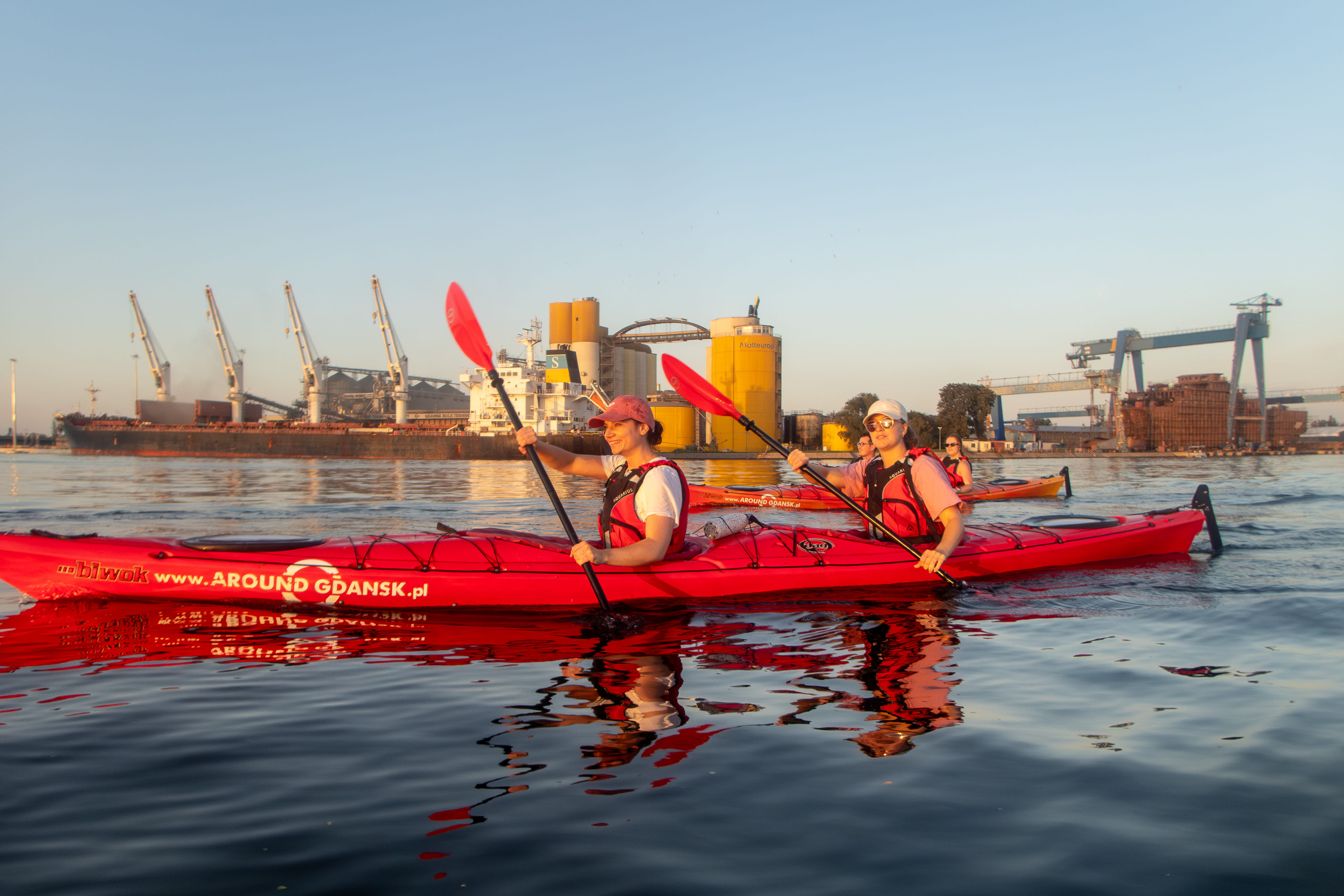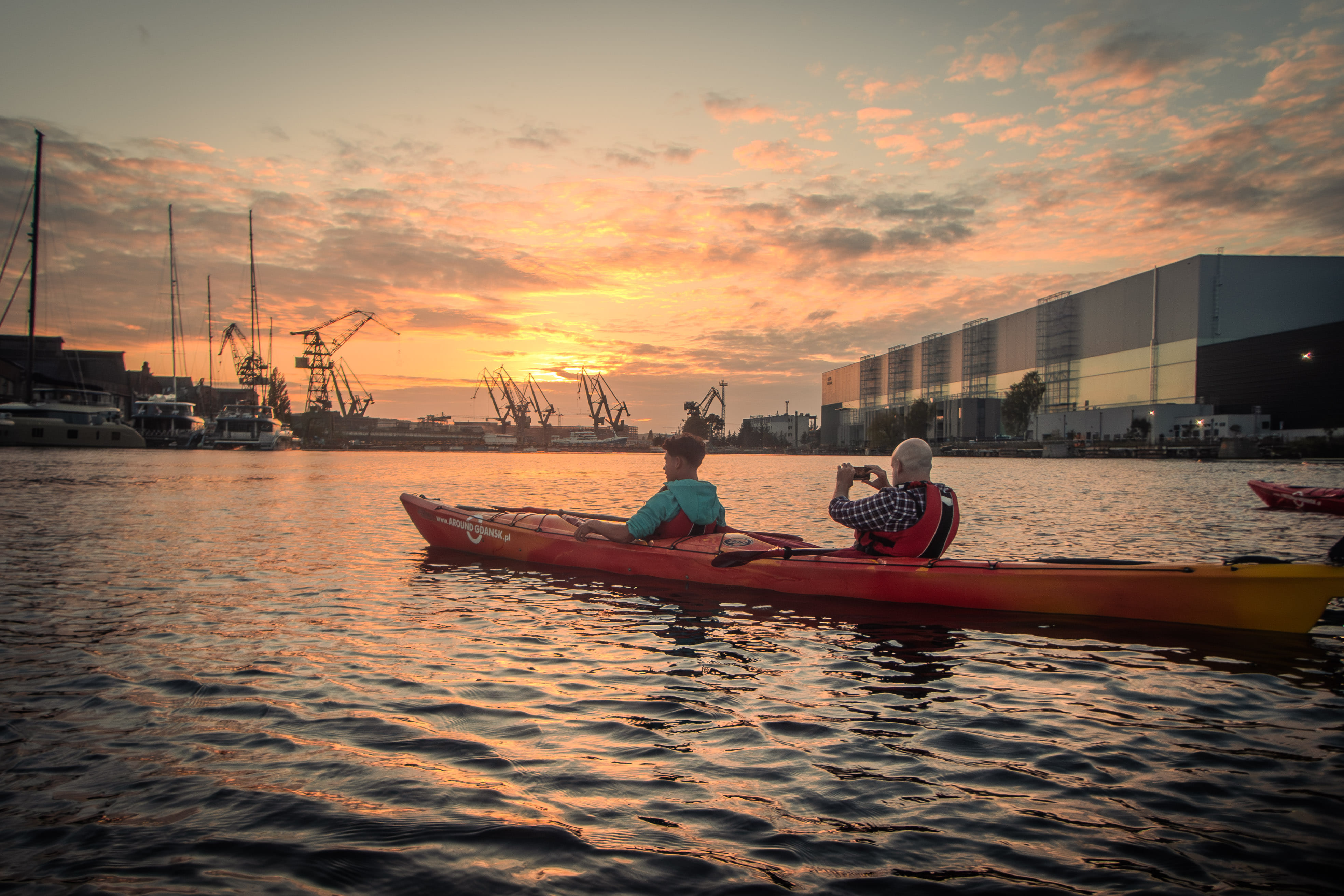Embrace the golden hour in Gdańsk with this enchanting sunset kayaking adventure, the ultimate way to experience the city’s summer beauty from the water. Your journey starts approximately two hours before sunset at our riverside base, where our expert guides conduct a comprehensive safety briefing and a fundamental paddling lesson. You will be equipped with professional sea kayaks, featuring individual cockpits secured with spray decks (skirts) to keep you dry and comfortable. To ensure a smooth experience, our kayaks are equipped with rudders, making it effortless to maintain your course and navigate even in changing conditions. These high-performance boats are designed to slice through the water efficiently, allowing you to cover greater distances with less effort.
