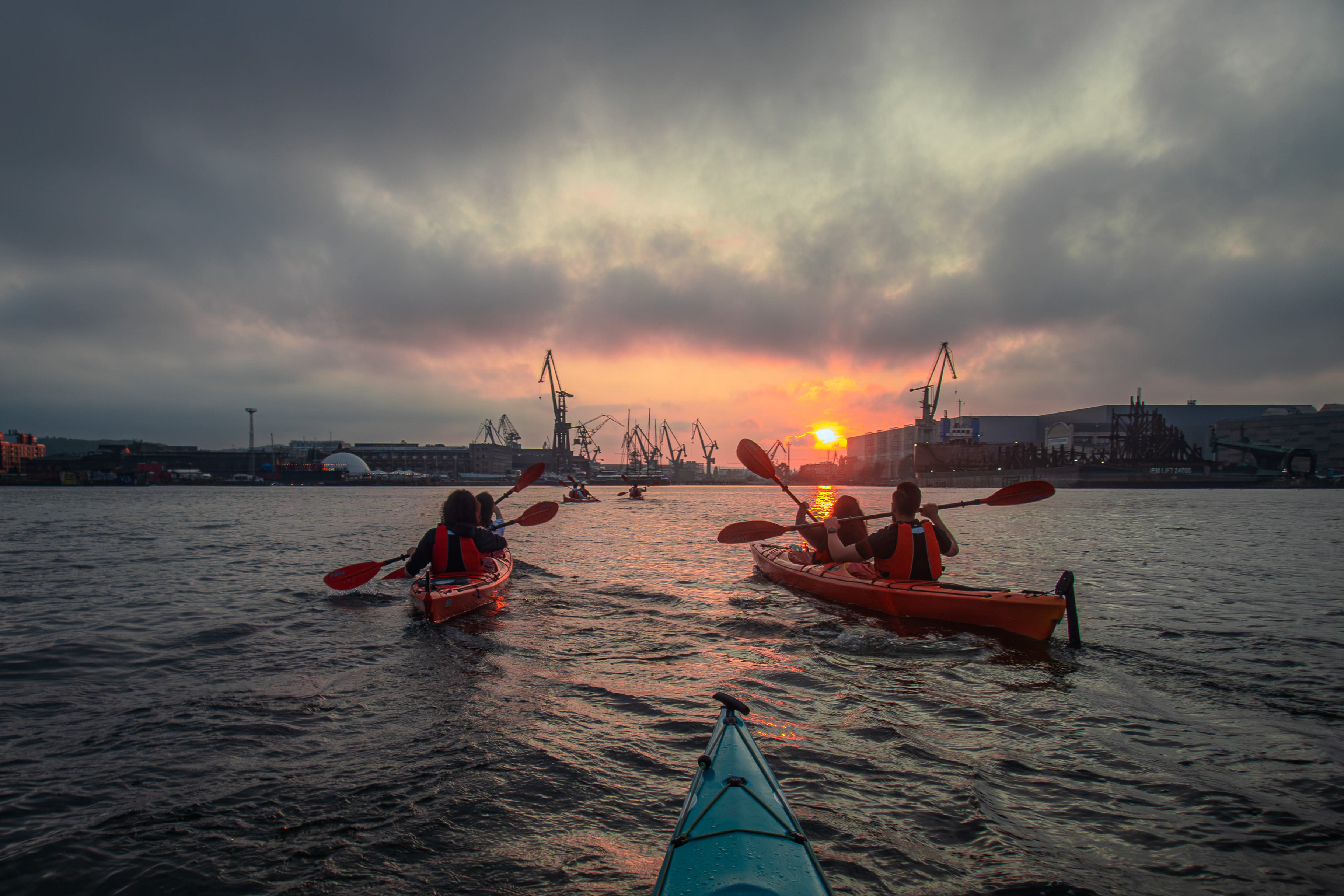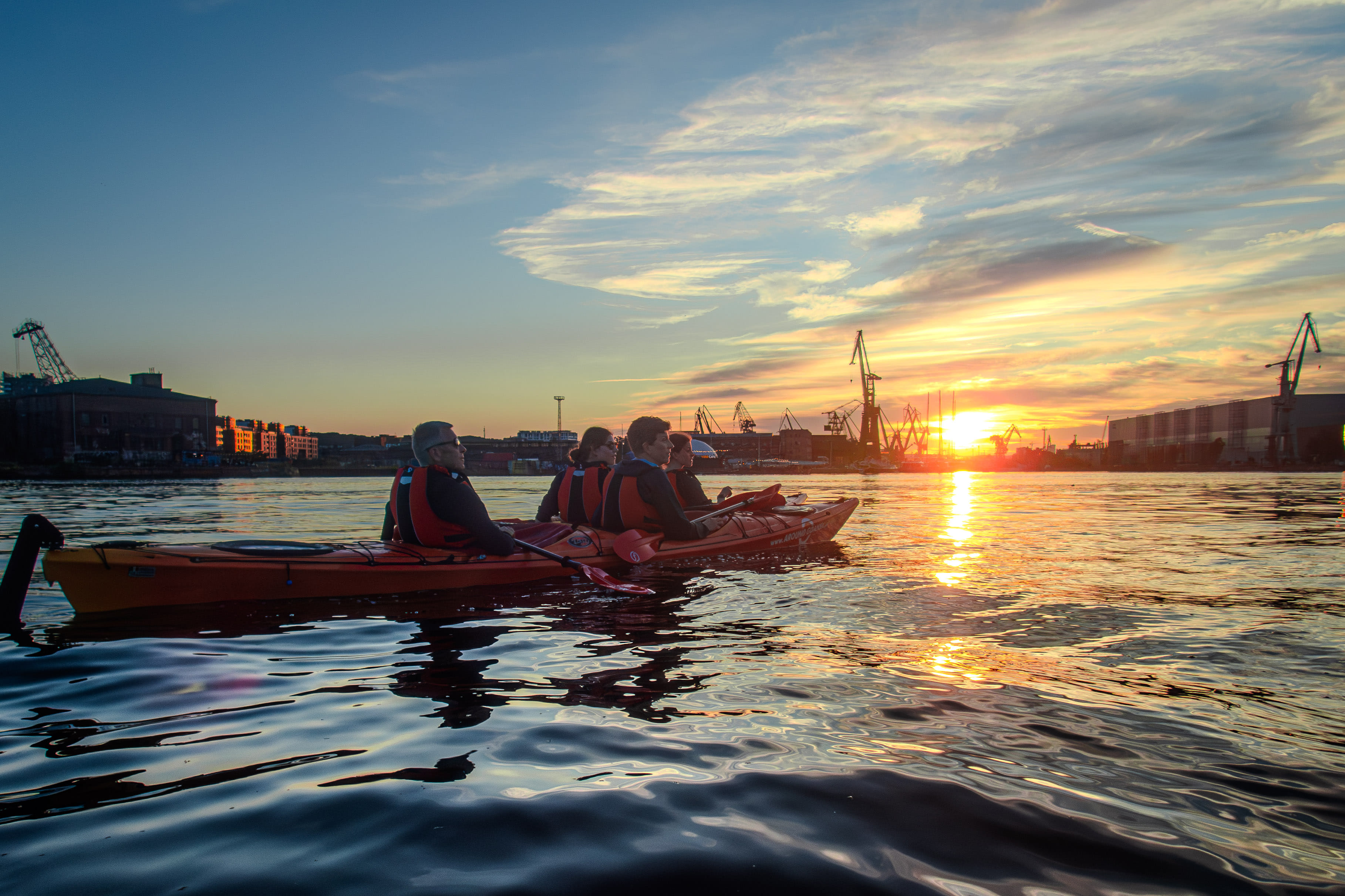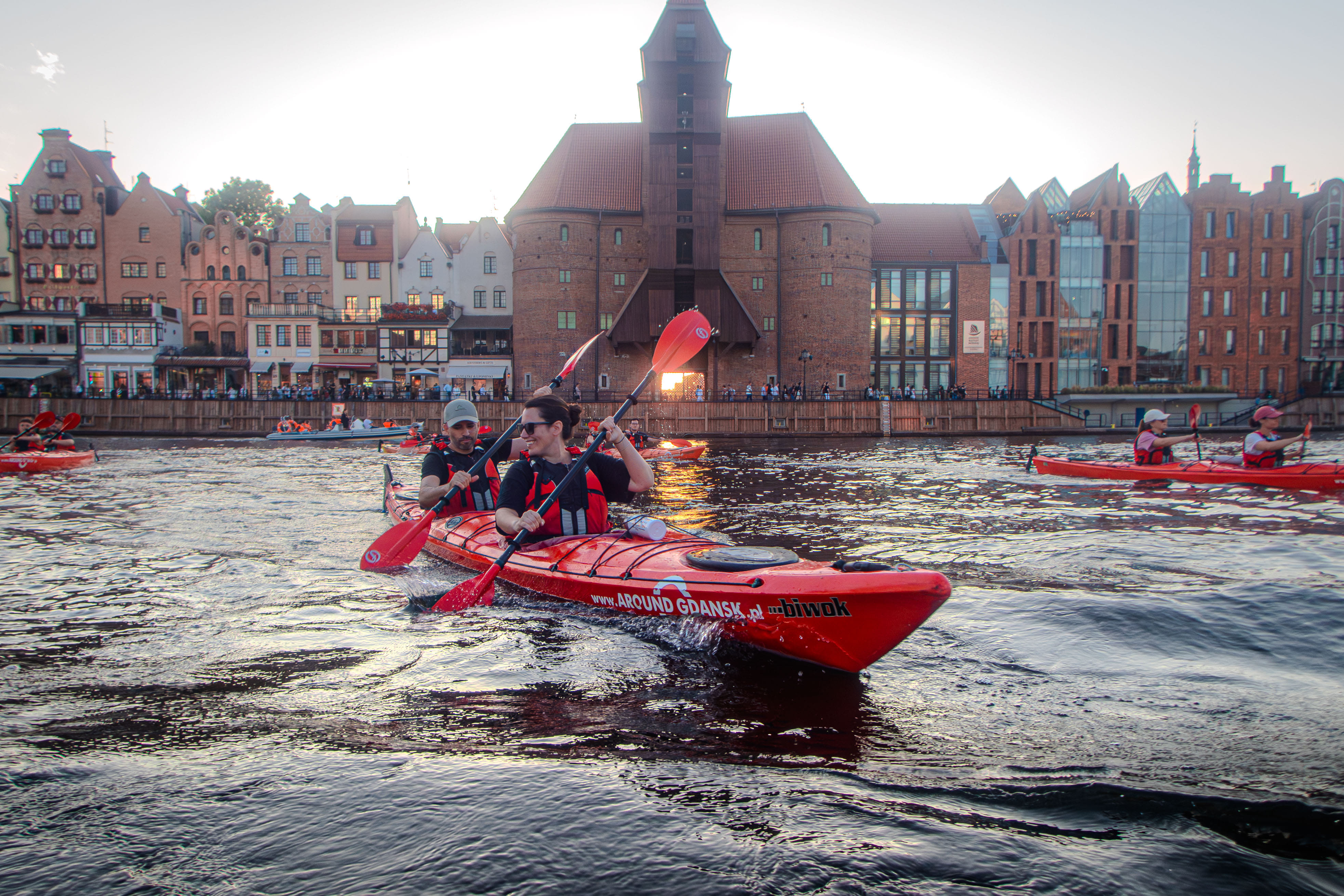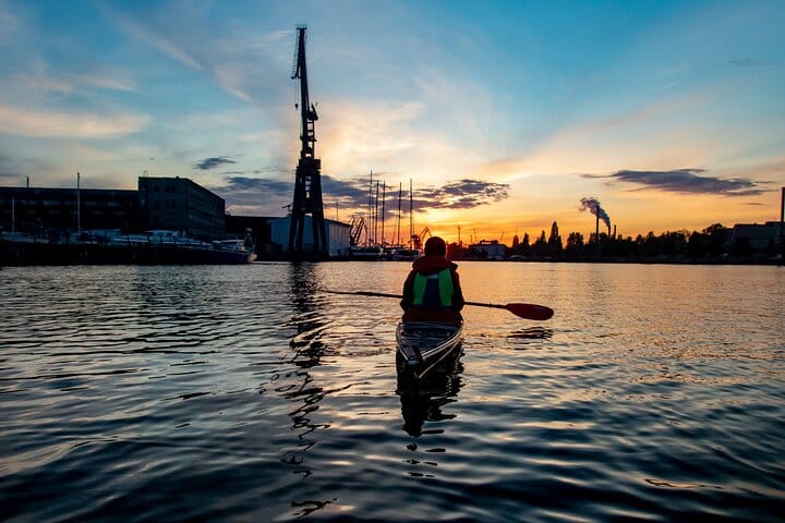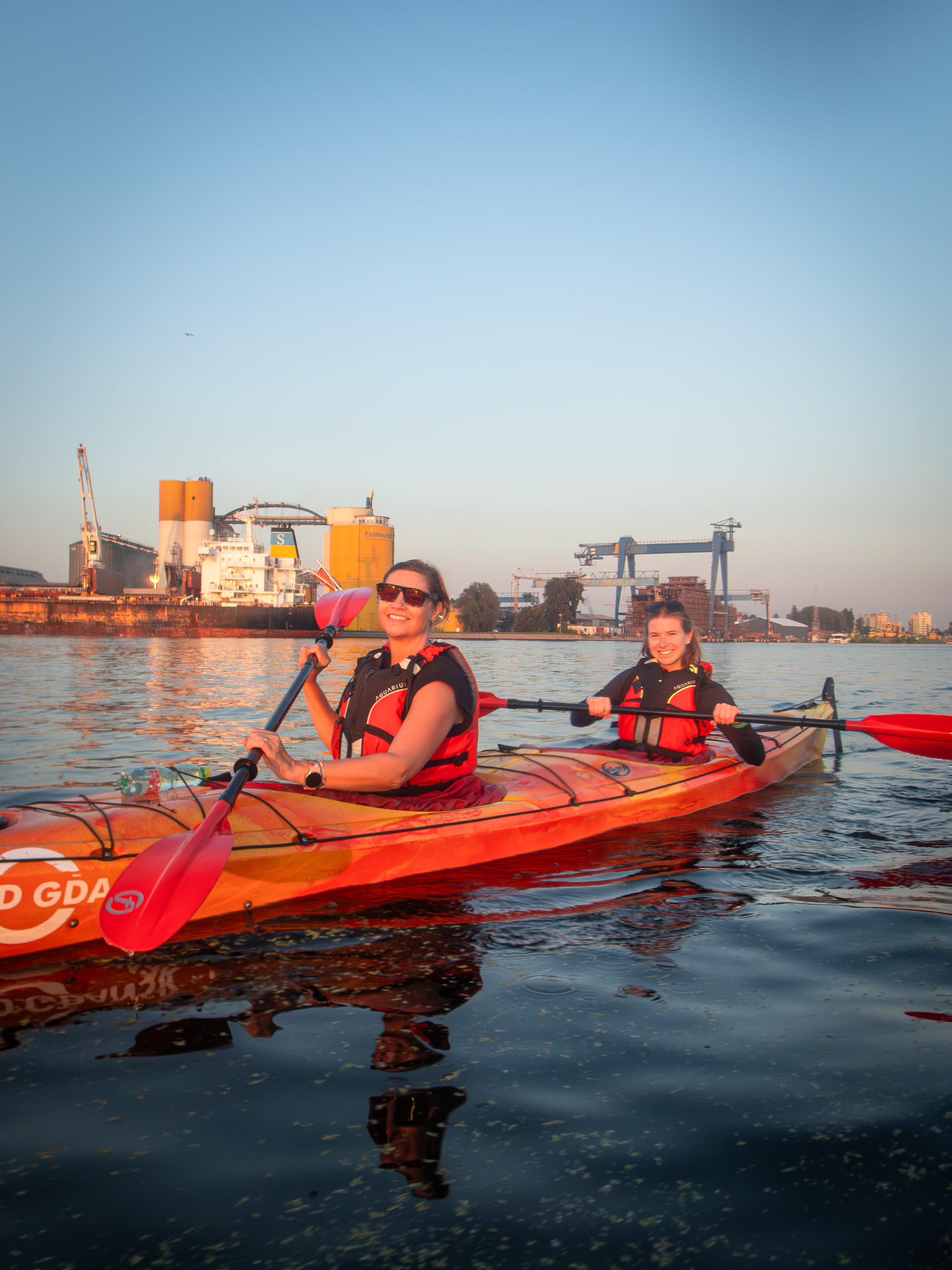 Embrace the golden hour in Gdańsk with this enchanting sunset kayaking adventure, the ultimate way to experience the city’s summer beauty from the water. Your journey starts approximately two hours before sunset at our riverside base, where our expert guides conduct a comprehensive safety briefing and a fundamental paddling lesson. You will be equipped with professional sea kayaks, featuring individual cockpits secured with spray decks (skirts) to keep you dry and comfortable. To ensure a smooth experience, our kayaks are equipped with rudders, making it effortless to maintain your course and navigate even in changing conditions. These high-performance boats are designed to slice through the water efficiently, allowing you to cover greater distances with less effort.